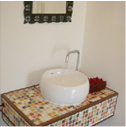 タイルや家具などを、お客様のイメージに合わせてデザインしています。選んだタイルから発送して、家具や洗面台を作ることも可能です。