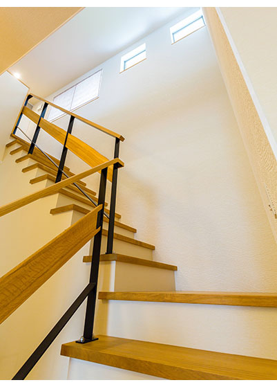 階段手摺の中段は、ナラの木の一枚板です。 |