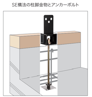 SE 構法では、ラグスクリュー状のS ボルトが柱と梁の接合部にしっかり食い込み定着することにより、木の収縮に対しても剛性を確保します。 |